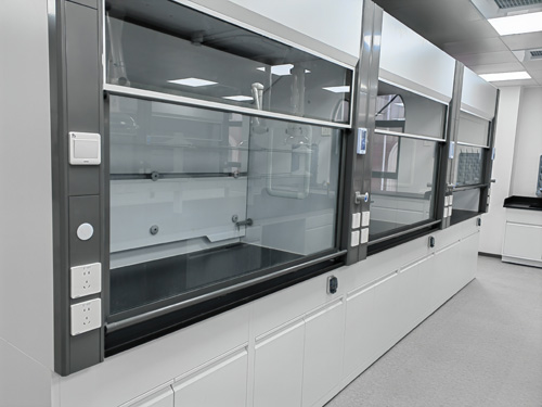 2)采光:運用橢圓形節能環保孔燈,取消隱藏于頂板上,不與送風柜中測試有害氣體之間觸碰,易更改,透明度完整提供測試條件。